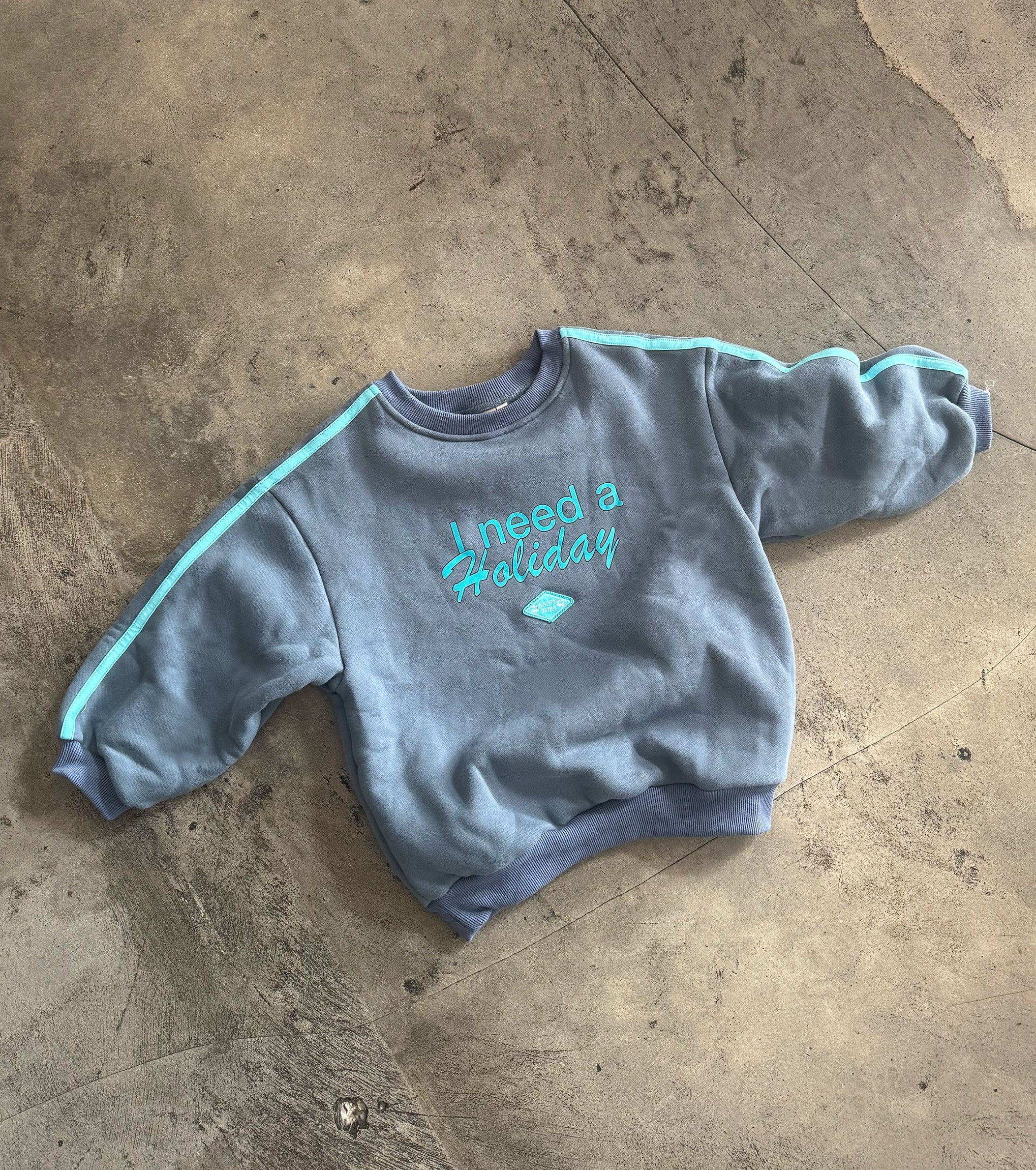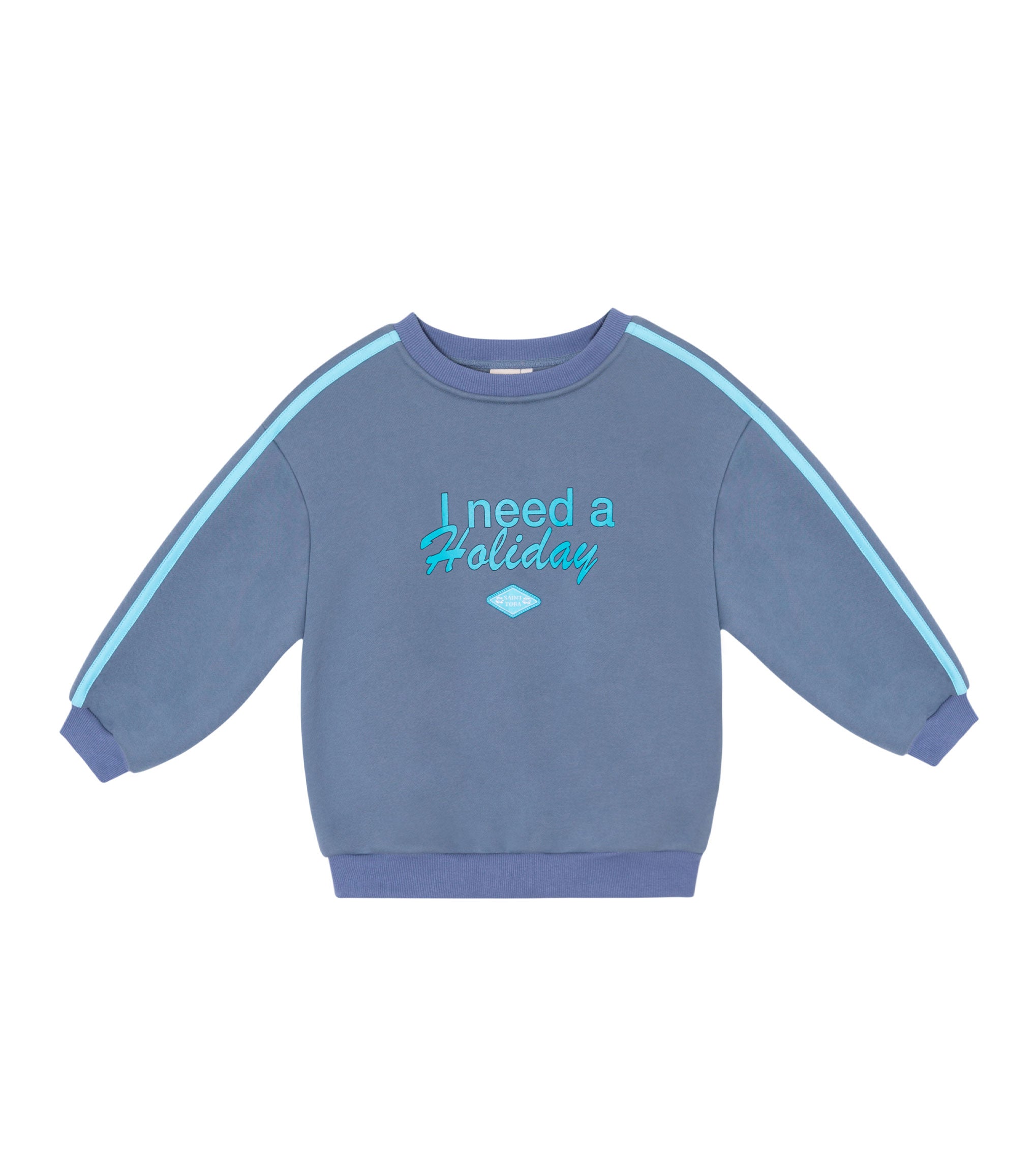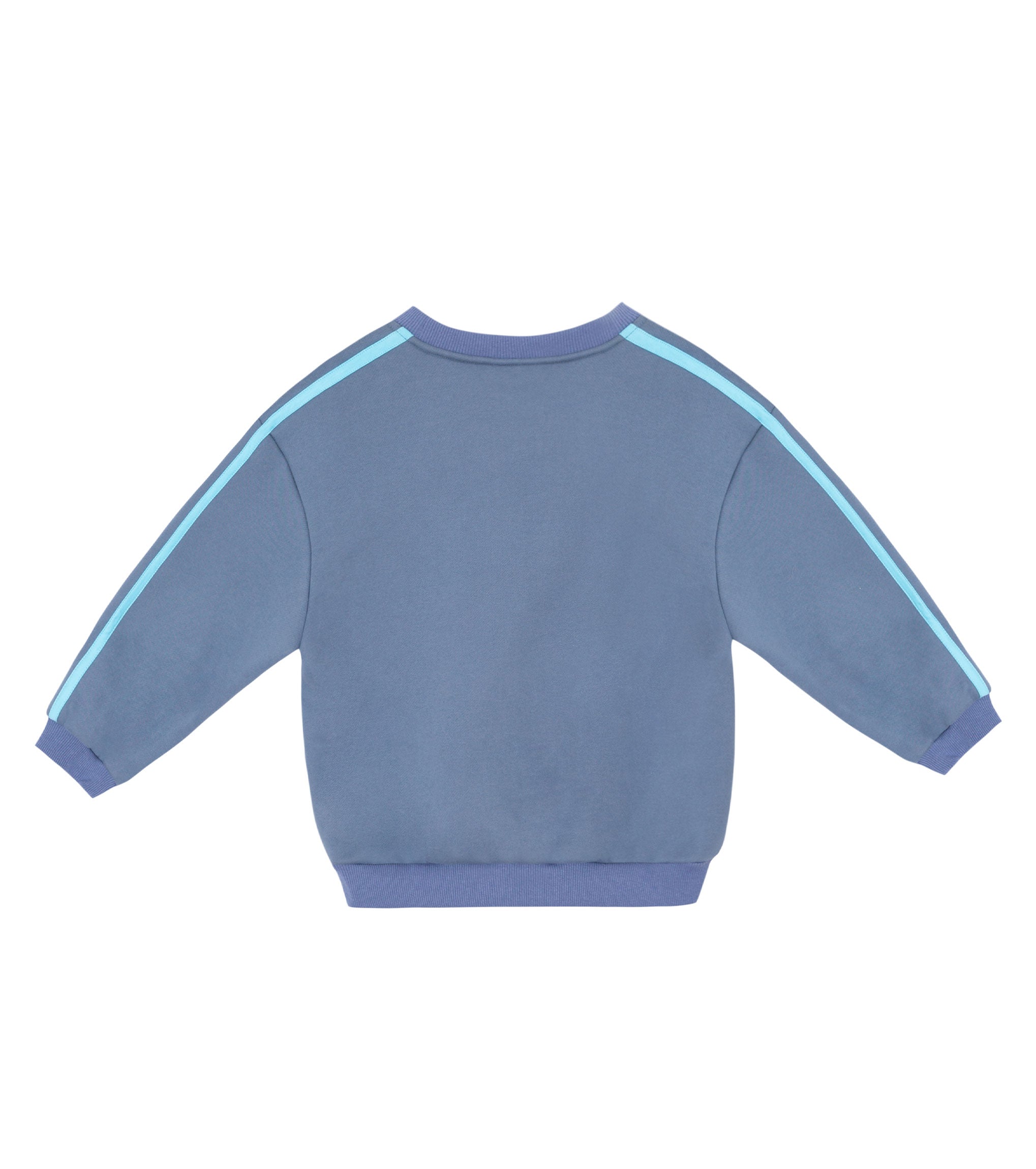 A super comfy, soft blue pullover with aqua stripes down the sleeves - perfect for little adventurers (and big daydreamers).